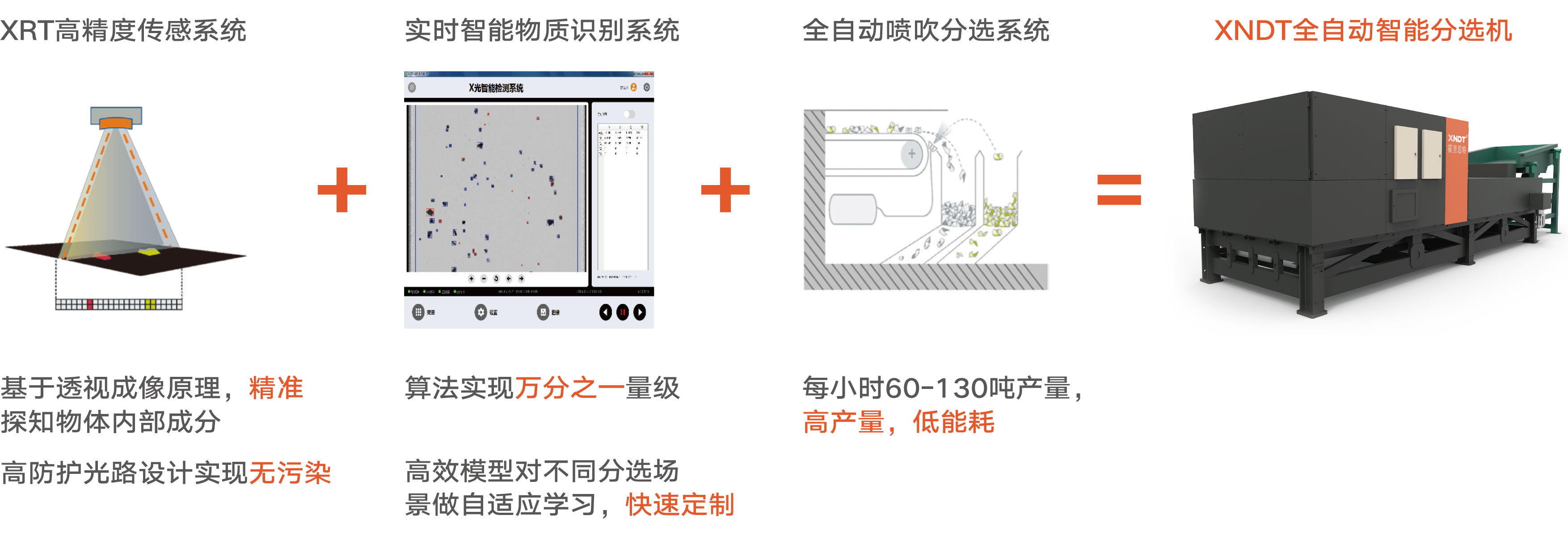 XNDT-104 是由霍里思特自主研发的全自动智能在线分选系统。